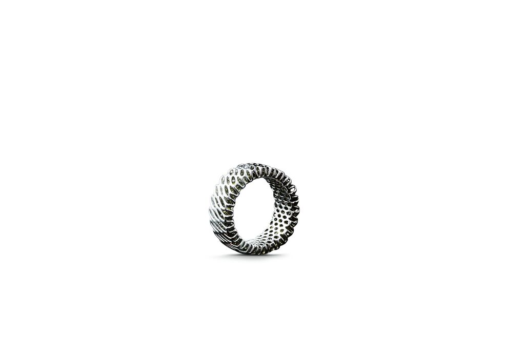 The concept of the Morning Dew ring is based on the material used. It is made from regenerated silver that is recovered from valuable electronic waste in a particularly environmentally friendly way. The method is characterised above all by the fact that wastewater generation is reduced in the recycling process. The many small, stylised droplets that characterise the design of the ring symbolise this approach. Through the use of “green” silver, the manufacturer hopes to provide a blueprint for a reduction of resource waste.