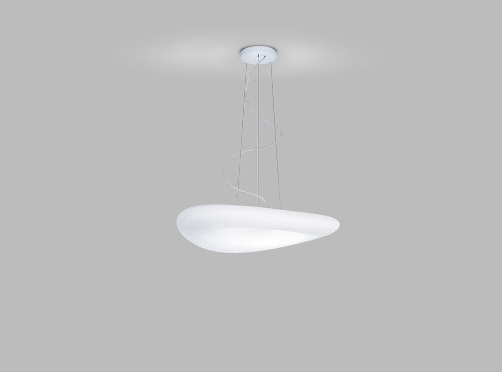 Mr. Magoo is an LED pendant luminaire with an iconic appeal, which was designed to express the harmony of shapes, light and visually generated emotions. The asymmetric contours of the luminaire are embraced by well-balanced lines. The light is evenly distributed by the housing of the luminaire, resulting in an ambient lighting with a natural appeal. The large-size pendant is also available as a floor lamp or ceiling light.