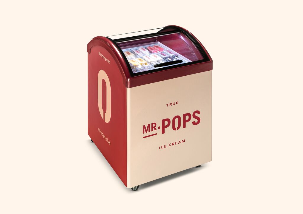 Mr.Pops is a well-known brand of ice cream lollies in Ukraine. The task was to develop a new brand design as well as several types of packaging. The creative idea for the design of the word mark is based on a graphic element integrated into the letter “O”, which makes the letter resemble the contour of an ice lolly. This surprising effect was so unique that the modified letter now serves as a key visual and was adapted for all of the advertising materials and packaging. In combination with high-contrast colour areas, this creates an overall distinctive appearance.