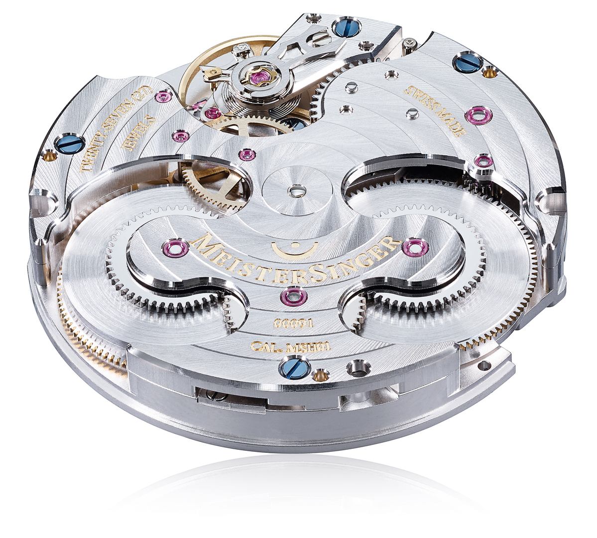 The new MeisterSinger MSH01 manual wind mechanical movement is the basis for a new generation of single-hand watches crafted by the Münster-based manufacturer. Within three years, the team at MeisterSinger’s long-standing cooperation partner in Switzerland designed a calibre from scratch that is aesthetically unmistakable. The MSH01 is very robust, and its design focuses on the essentials. A long power reserve, a uniquely designed movement and its design potential for subsequent watch concepts were at the forefront of the development.