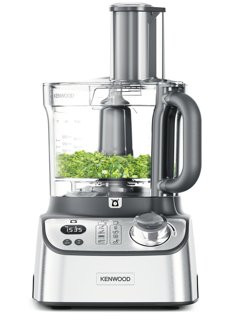 The Multipro Express Weigh + is a compact food processor that offers versatile utilisation options thanks to numerous attachments. A special functional feature is the integrated scale, which enables precise weighing directly in the bowl or on a separate tray. With the clear control panel oriented towards the user, interaction is optimised and the weighing function emphasised. The body and the stainless-steel accents create a high-grade look that integrates well into any kitchen environment.