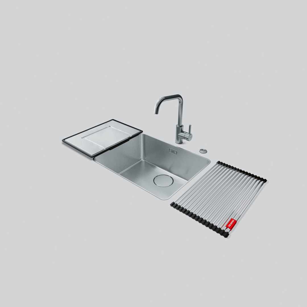The design concept of Mythos Bowl is based on the idea of eliminating the gap between the sink and the kitchen counter. The result is a concisely shaped sink with a narrow rim of 6 mm for seamless integration into the worktop. Rounded corners inside and well-thought-out details such as a round flush waste cover and a fully integrated overflow provide a sleek overall appearance.