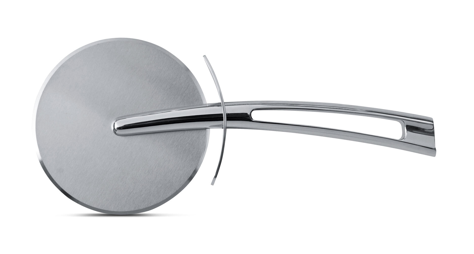 This pizza cutter from the N1 series showcases a precisely hollowed handle as its characteristic design feature. The elegant lines of the knife create a harmonious balance between the handle and the rotating blade. Manufactured from stain resistant steel, the pizza cutter lies comfortably and securely in the hand. With its sharp, circular blade, it cuts pizzas effortlessly into slices.