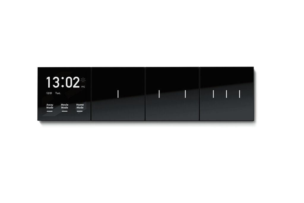 The purist design of these smart home control elements delivers a new quality of experience. Interacting with them via surfaces that are clearly structured and pleasant to the touch projects a sense of lightness and impressive elegance. The graphical interface is easy to understand and thus supports intuitive operation in daily use. The consistent modularity and connectivity of this series is also convincing.