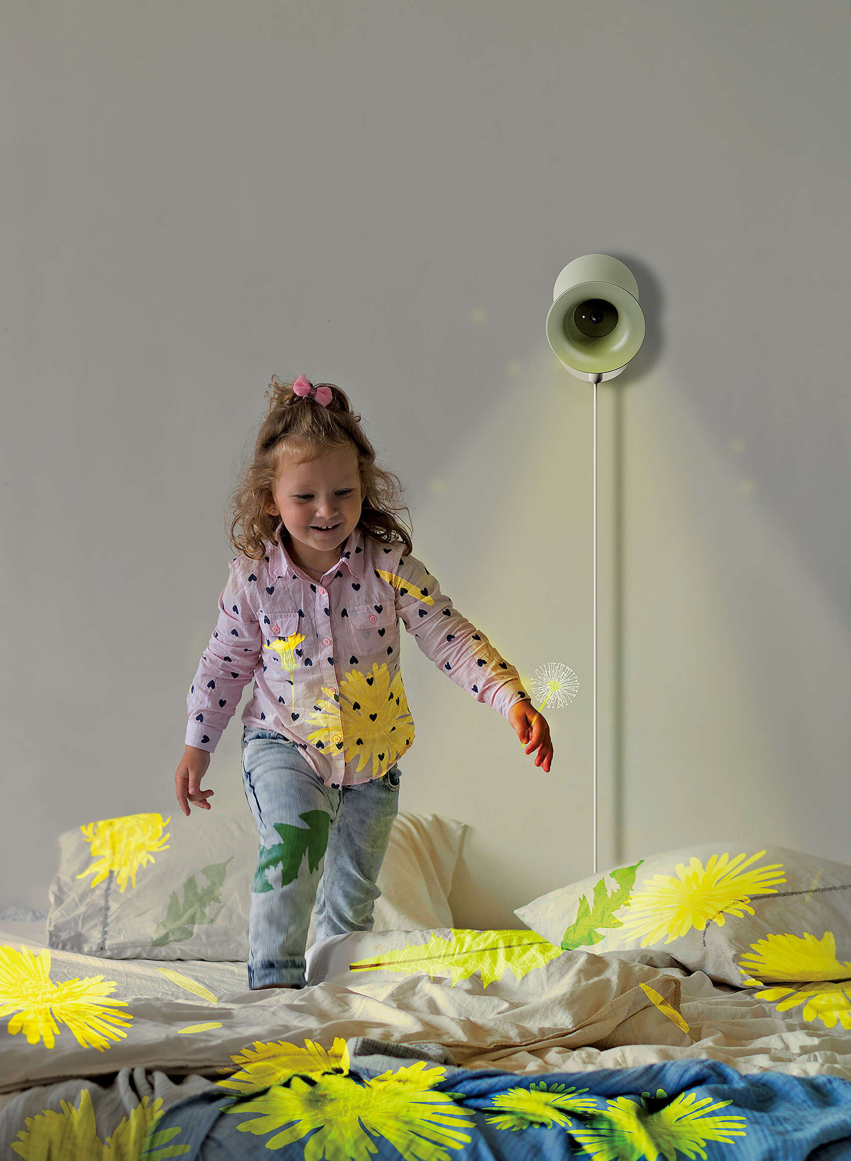 NOLLY comprises three devices: a detachable stamp, a circular reader, and a wall beam projector. These interconnected devices create fun and educational experiences for children. During outdoor adventures, children explore various plants, saving images, scans, and information using the detachable stamp. At home, they place the stamp on the circular reader to view their discoveries. By rotating the handle, they select specific plants, and the wall beam projector recognises them, projecting graphics onto walls and floors.