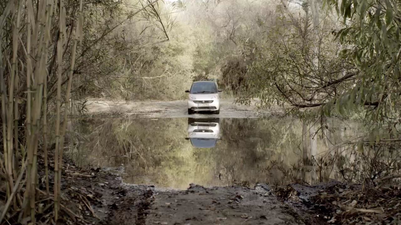 Accompanied by heavy metal music, this TV spot shows a smart fortwo that drives around in a rough, off-road environment without any tracks or paths. In this rough terrain, the car tries to climb up a steep hill, cross a river and pass over large rocks, miserably failing every challenge. With these absurd images, the presumed weakness of the smart is turned into a strength, as the subsequent images of the spot demonstrate: just as SUVs are not made for the city, the smart fortwo is not made for off-road driving. Evoking a reversal conclusion, the subsequent images of the spot celebrate the urban environment. Unlike an SUV that is forced to circle around to find a parking spot, for the smart this is not a problem. On the contrary: the smart fortwo is perfect for the city. Realised in quick cuts, viewers follow this fast-paced ride that links the wit of the spot with coolness and the joy of driving.