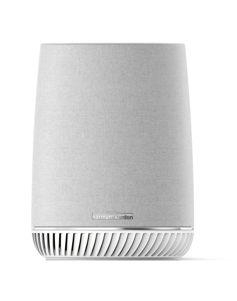 Orbi Voice bundles a highly efficient mesh Wi-Fi router with a smart Alexa speaker. Loudspeakers with built-in Harman Kardon technology ensure the sound quality is exceptionally high. Voice control can be used to operate smart home devices and play music. Streaming and downloads work smoothly and easily. Outwardly, Orbi Voice uses a cylindric design vocabulary while the mix of materials – textiles, plastic and metal – gives the device a modern yet discreet appearance.