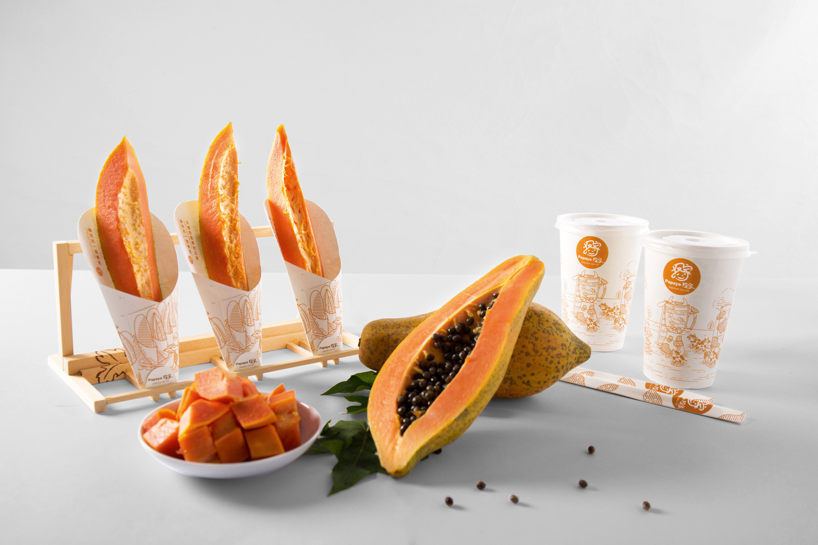 This environmentally friendly, illustrated cardboard packaging offers protection for papaya fruits and products. Since the papaya is considered to improve the properties of breast milk, a gift package is specially aimed at mothers. There is room in the package for three fruits, which are wrapped in a paper net for safe transport. Its shape brings a cradle to mind, an impression which is further increased by the two carrying straps and a textile banderol which is tied in a bow. A further rectangular packaging holds glass jars with fruit salad made from green papaya.