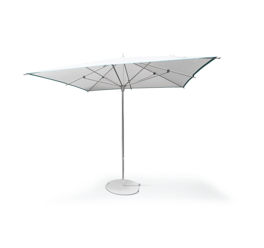 Paris is a parasol the contemporary design of which attaches great importance to comfortable handling and a long service life. The beauty of this parasol lies in its simplicity; the silhouette blends harmoniously into modern architectural styles. In order to reduce waste, all components are fully recyclable and the canopy can easily be replaced if required. The base has sufficient weight to guarantee reliable stability and yet, thanks to its wheels, it is easy to move.