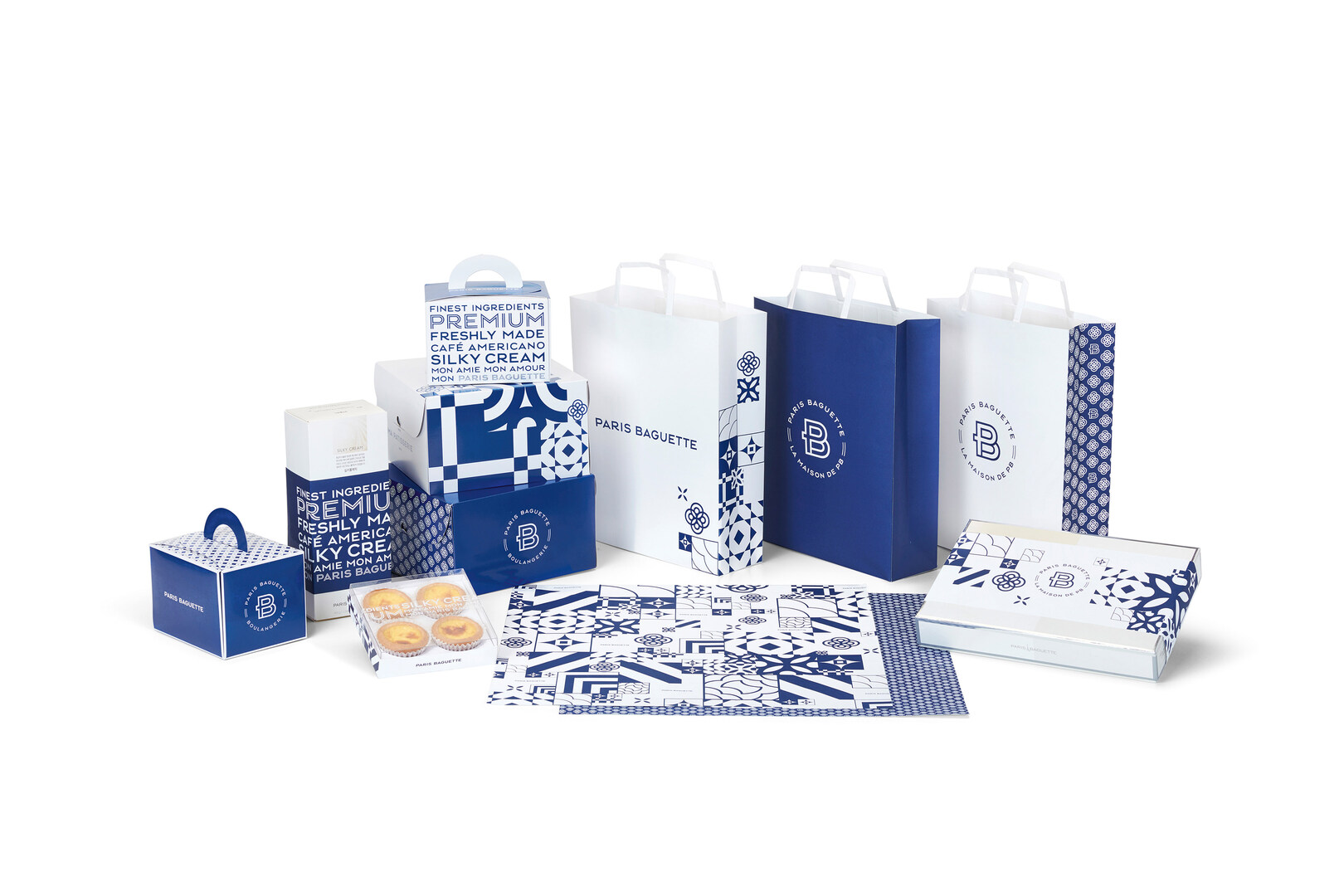 The new packaging design for Paris Baguette is the expression of a clean, confident European style balanced with the French art deco traditions of the early 20th century. Following the maxim “La Belle Vie”, a modern look was essentially created, conveying a sense of Paris and France. Some visual elements, like the evolved logotypes, marques and the brand colour blue, convey simple, classic sophistication. In addition, other elements create a bolder personality and mix French inspiration with modern design sensibility, such as the new Paris Baguette house typeface or the use of attractive patterns.