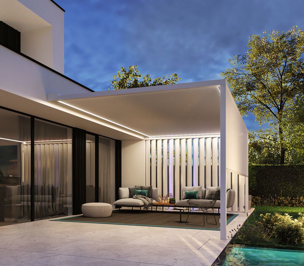 The Z!P pergola awning combines an impressively clear design language with the integration of contemporary technologies such as LED ambient lighting. Very smart and convenient, it can also be operated via an app using a smartphone or tablet. It offers a thoroughly well-thought-out functionality that is fun to use and allows for individual customisation. The fabric guide has also been elegantly solved.