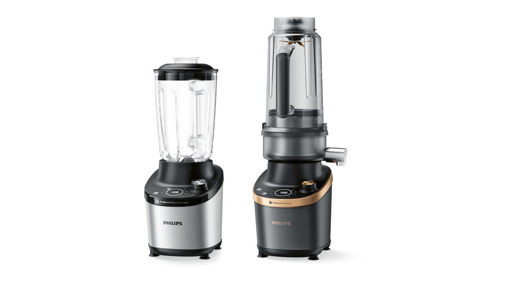 The Philips 7000 Series High Speed Blender and Flip & Juice Blender can be used for the preparation of juices and smoothies as well as soups, snacks and desserts. With the ProBlend Ultra function, even fibrous fruits and vegetables can be processed into drinks with a fine consistency. Serrated blades and a ribbed jar ensure optimal processing. The appliances are available in two versions: black with a stainless-steel look and anthracite metallic with bronze-coloured elements. “The compact housing made of brushed metal saves valuable space on the work surface. The colour variants combine well with other kitchen appliances,” the jury commented.