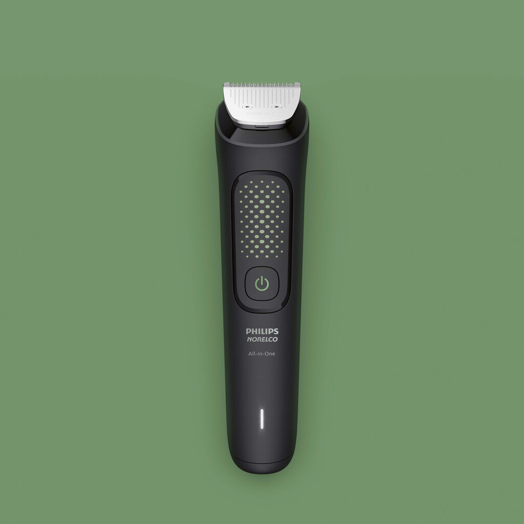 The easy-to-use, multifunctional Philips All-in-One Trimmer Series 3000 is designed to trim, shave and style facial, head and body hair. Sleek lines and a streamlined design guarantee good manoeuvrability and precision handling. A practical power grip pattern on the handle ensures a non-slip grip, even in wet room environments, and the device's numerous accessories can easily be switched around. Vibrant colour highlights complete the overall look.