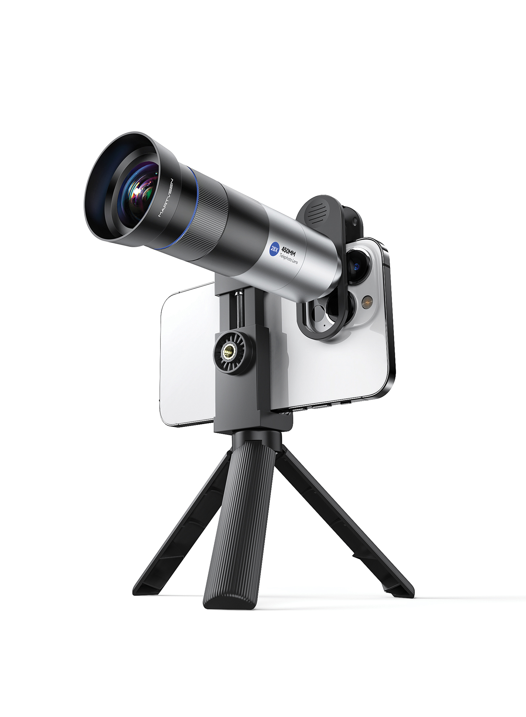The PHONE TELEPHOTO LENS features a minimalist black and white design with a signature blue accent. Simplified for a sleek appearance, it offers a fresh user experience. The robust clip with an adjustable screw nut ensures a secure fit and protective padding. Providing exceptional low-light performance and vivid images, it delivers a DSLR-quality experience at 1/10 the cost. Red Dot Award: Design Concept | Ready For Market | Cameras, Drones and Camera Equipment