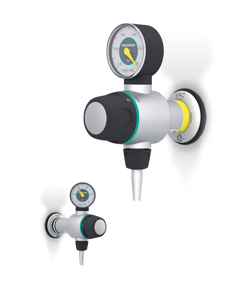 The medical suction regulators impress with their comfortable surface feel and coloured details, which cleverly direct attention to essential components like the indicator needle.