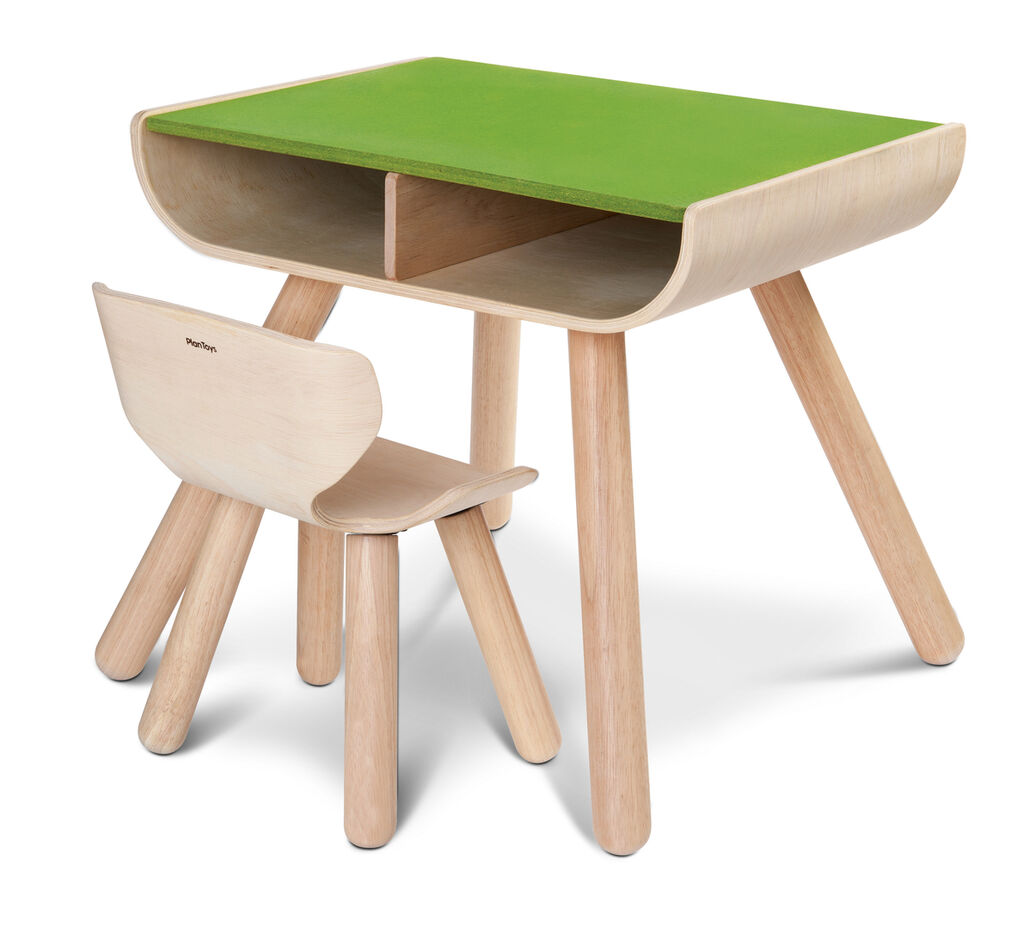 Table and chair of the PlanHome collection feature an elegant bent wood design. The multifunctional table has a tabletop with chalkboard coating and two storage compartments; the chair is ergonomically designed according to the children’s physique. The durable furniture is made from the sustainable material PlanWood which, among other materials, is composed of sawdust resulting from the manufacture of the company’s toy production.
