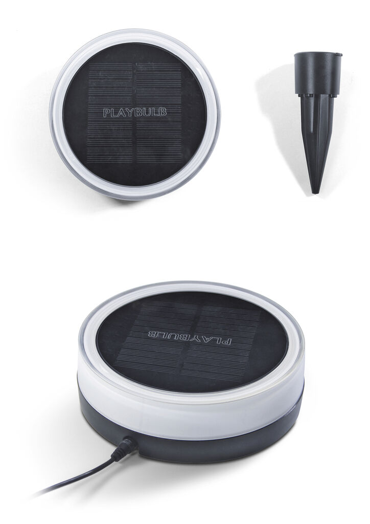Playbulb Garden is a wireless solar garden lamp which can be controlled by a smartphone. A free app allows users to switch the lamp on and off, or to control the brightness. In addition, there is a variety of RGBW colours and light effects to choose from as well as a timer function. The group control function allows users to control any number of Playbulbs via only one mobile device. Supplementing the solar energy, a 1,000 mAh battery lengthens the possible operating time. The garden lamp is adjustable in height by stacking either one or two holders on top of each other.