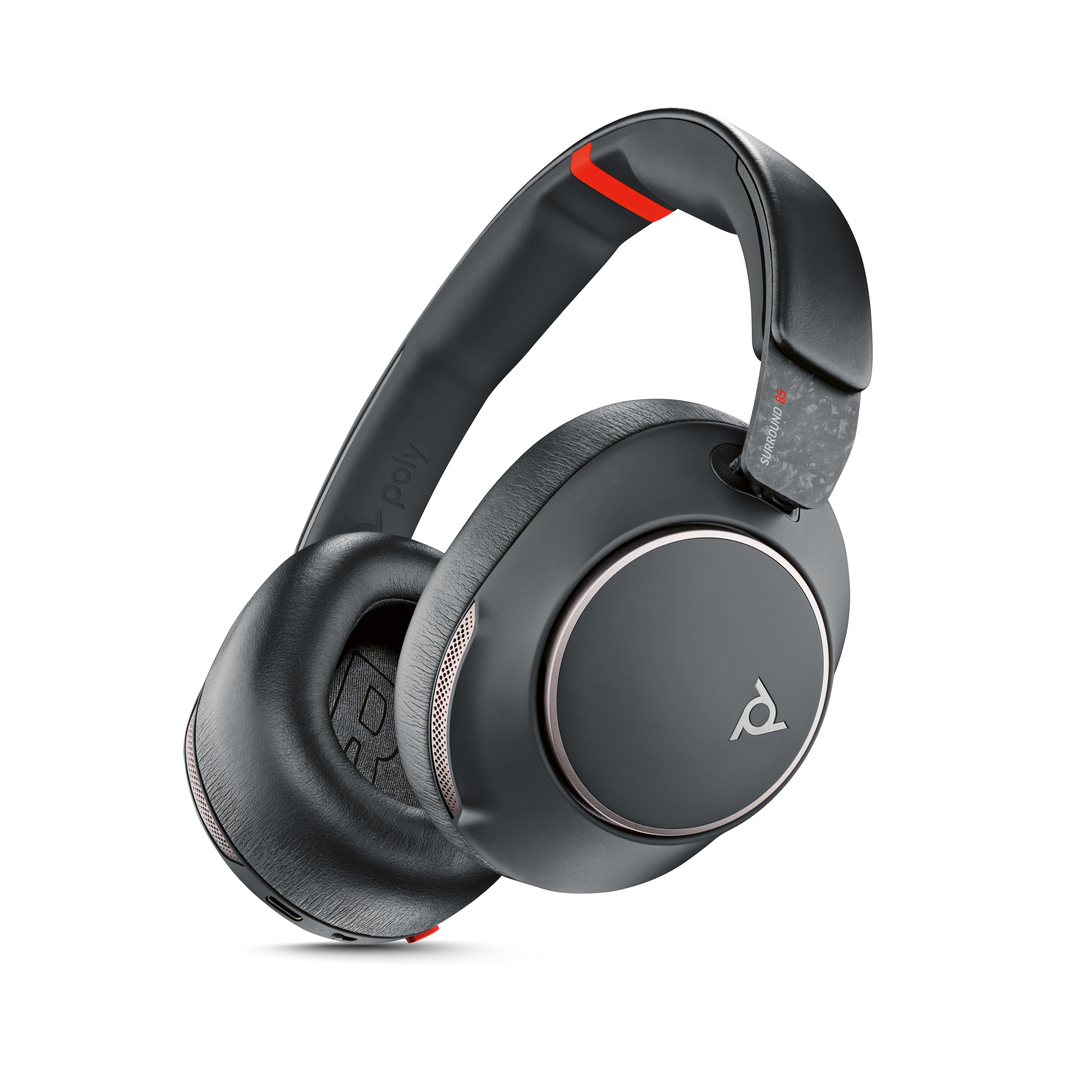 The Poly Voyager Surround 85 UC headset skilfully combines high wearing comfort and easy-to-use touch controls with a minimalist appearance.
