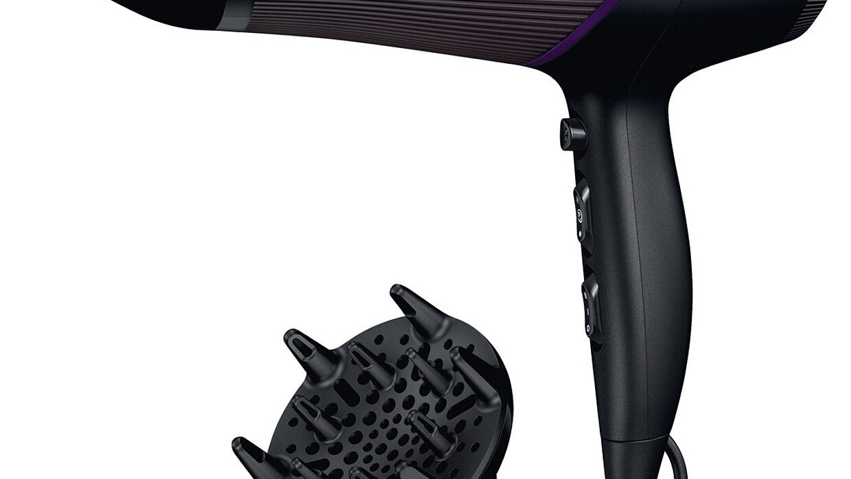 The Pro Range hairstyling set is made of robust and high-quality material. Inside the hairdryer a 6-mm-thin safety nozzle is installed. The Style & Protect feature has a flap that opens automatically in case of imminent overheating so that the hair is not damaged. The ThermoProtect setting controls the optimum drying temperature. Users can choose between six temperature and speed settings.