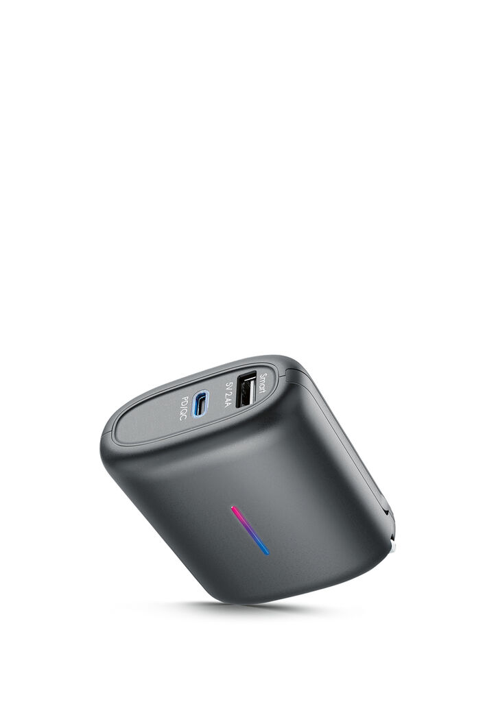 P.T Starlink PowerTRONEX X1 is a multifunctional powerbank with a retractable charging plug. It is compatible with various specifications for fast charging and, with its 18 watt power output, also functions as an emergency power supply for a laptop with a USB-C port. The oval form and appealing feel of the casing convey a sense of comfort and prevent the device from slipping out of the hand. It can be switched on via a touch sensor. A light strip aesthetically displays the remaining capacity of the powerbank.