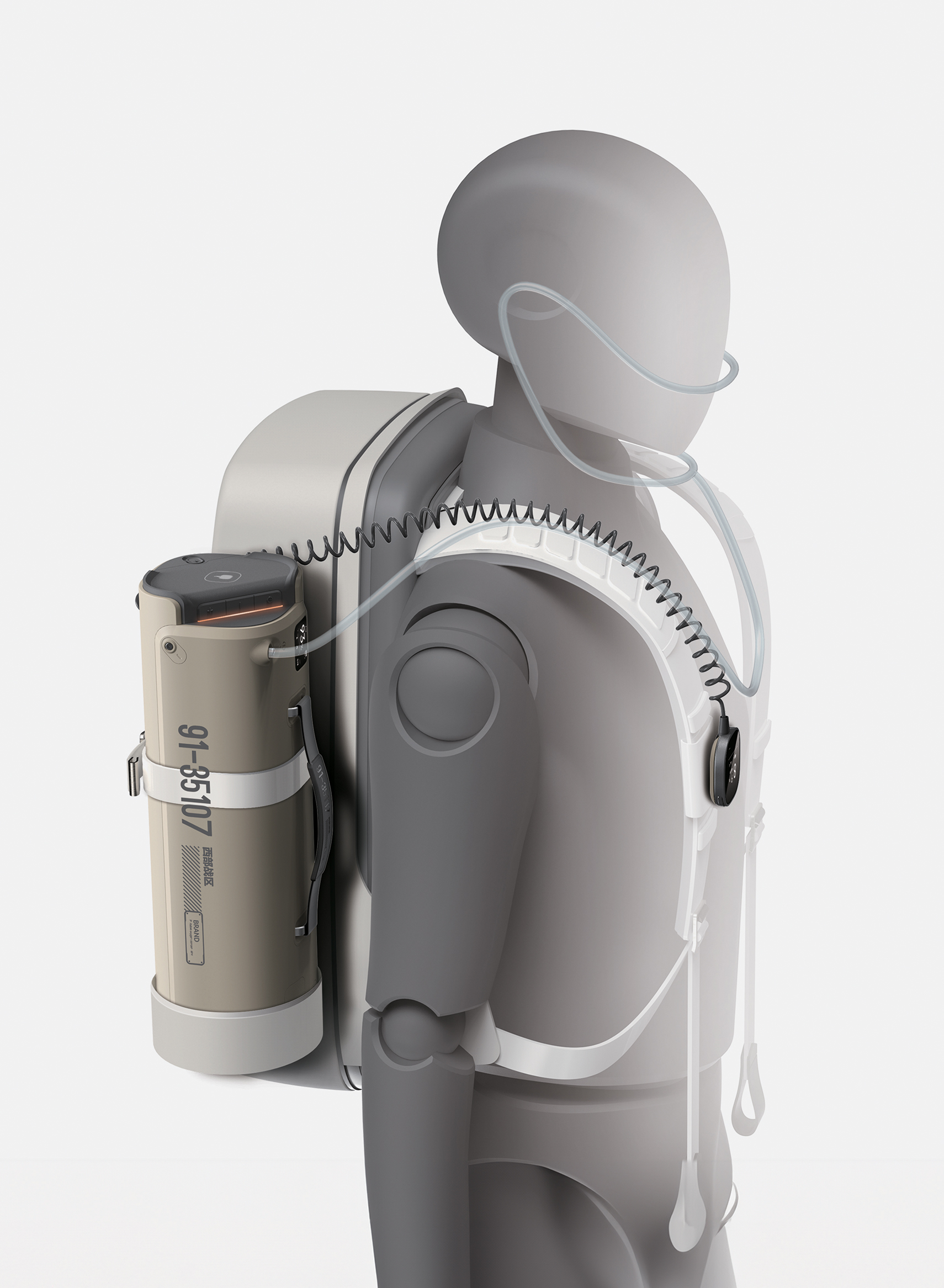 The concentrator’s backpack design positions the machine vertically on either side, freeing up the arms for movement. This setup allows easy adjustment via wired remote control in challenging outdoor settings. In vehicles, the concentrator can be securely fastened to the back of the driver’s seat headrest, minimising interference and ensuring smooth nasal cannula interaction, effectively solving issues with traditional in-car placements.