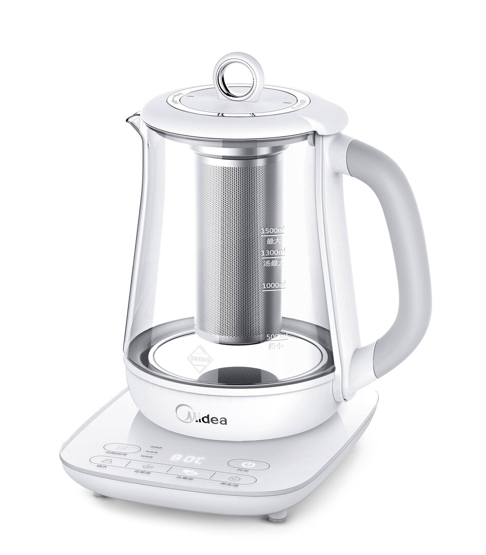 Pure Health Kettle is an appliance for nutrition-conscious people for preparing healthy beverages quickly and simply. The kettle has a capacity of 1.5 litres, is compact and designed prestigiously. The designs of the lid and the handle are inspired by a ring and represent love and care. A lid-in-lid system makes it possible to fill the filter from above. The user can choose between four main functions and can also add three individual programs of his choice.