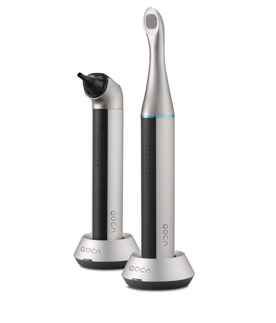 The digital technology of the otoscopes is used effectively to improve doctorpatient communication. With their organic lines, the devices appear as if cast in one piece.