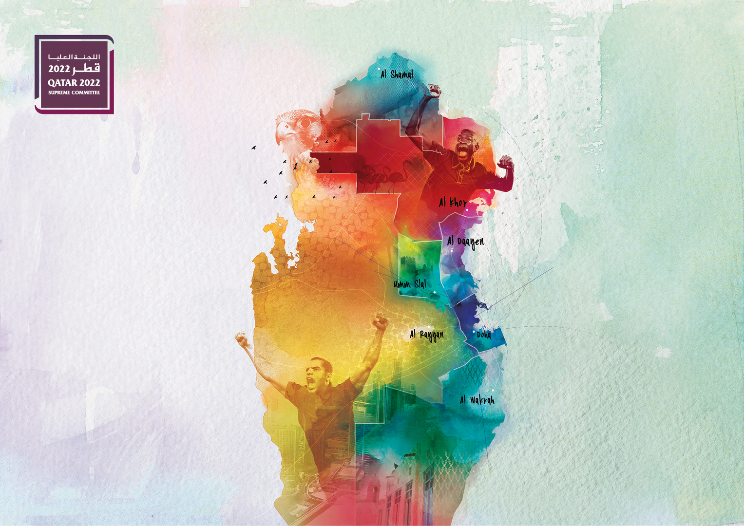 Powerful visuals dominate the Qatar 2022 Supreme Committee identity, which had to be relevant to a wide range of audiences including national and international businesses, government officials, sports organisations as well as local and overseas visitors. The corporate identity system needed flexibility and longevity to grow and evolve over the following years up to the 2022 FIFA World Cup Qatar. The primary inspiration was the diverse culture and heritage of Qatar. A dynamic canvas reflects the exciting and changing landscape, while seven key brand colours represent the traditions of the host nation.