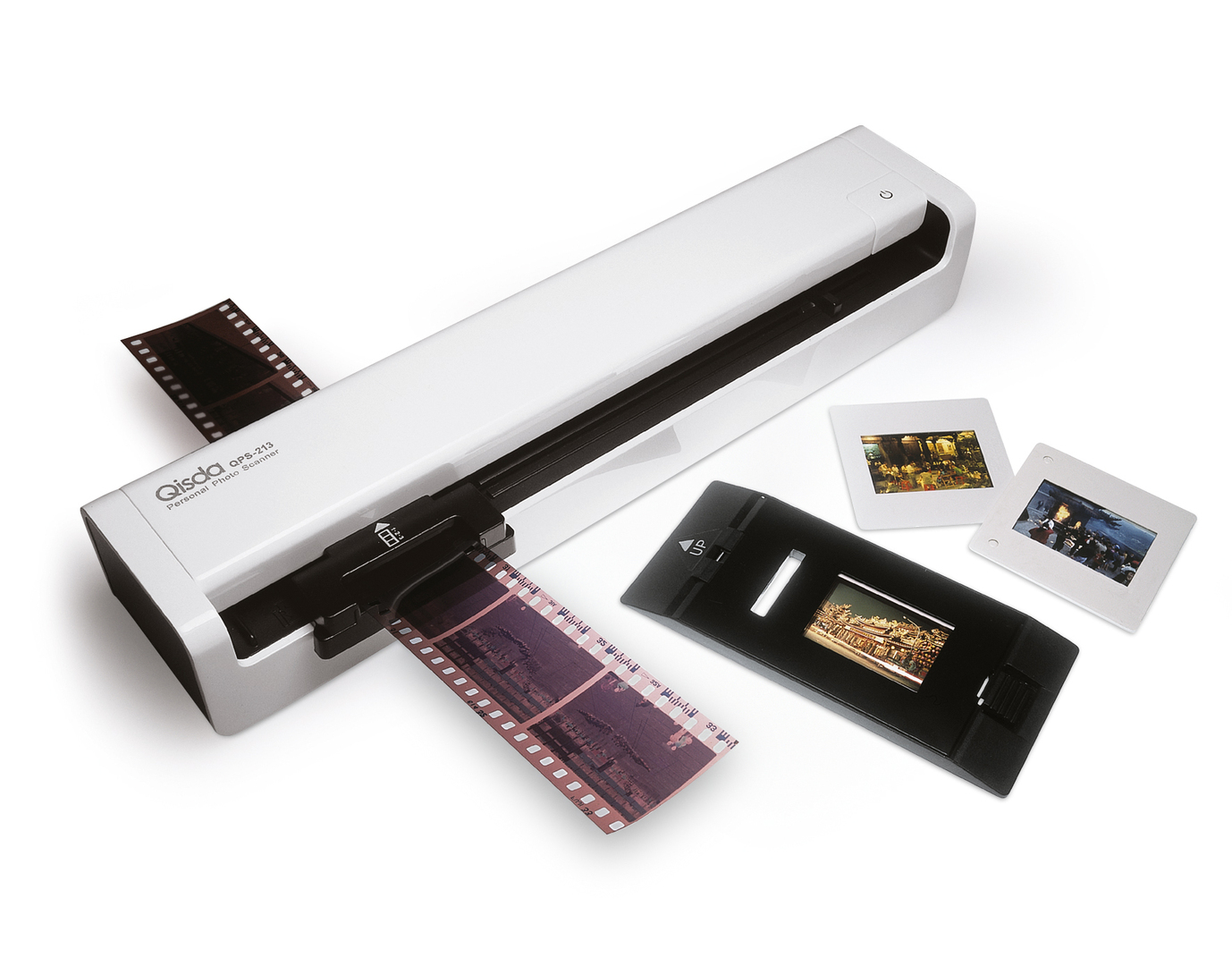 The QPS-213 portable scanner enables users to scan and digitally save A4-sized documents, photos, negatives and film strips. The device works independently from a computer with a USB stick or SD card for data input/output. With its lithium battery, the scanner can function without a power cord and may also be charged via USB connection. Its geometric design highlights the document feeding zone and facilitates intuitive usage.