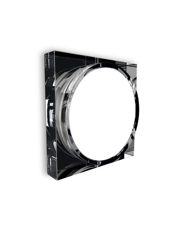 The crystal glass body lends the Quadratur wall luminaire a simple, timeless and at the same time elegant appearance. The form follows the minimalist LED technology, which provides outstanding light quality and, in combination with the crystal glass, is reminiscent of the brilliant lustre of Venetian glass. Each glass is unique and reflects the craftsmanship of the glass-making process. The interior circular and rectangular white surfaces prevent glare from the direct light and lend a distinctive atmosphere to any room. The geometric construction thereby shows distinct architectural qualities.