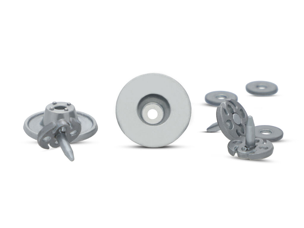 This system of detachable buttons and rivets is made of mono-material. It was primarily developed for the denim industry and enables the trim of garments to be easily removed before recycling. This is made possible by a compact detachment machine that is supplied to recycling stations. For attachment, manufacturers can simply use their existing systems. The rivets and buttons are made of recycled material and can thus be returned to the cycle.