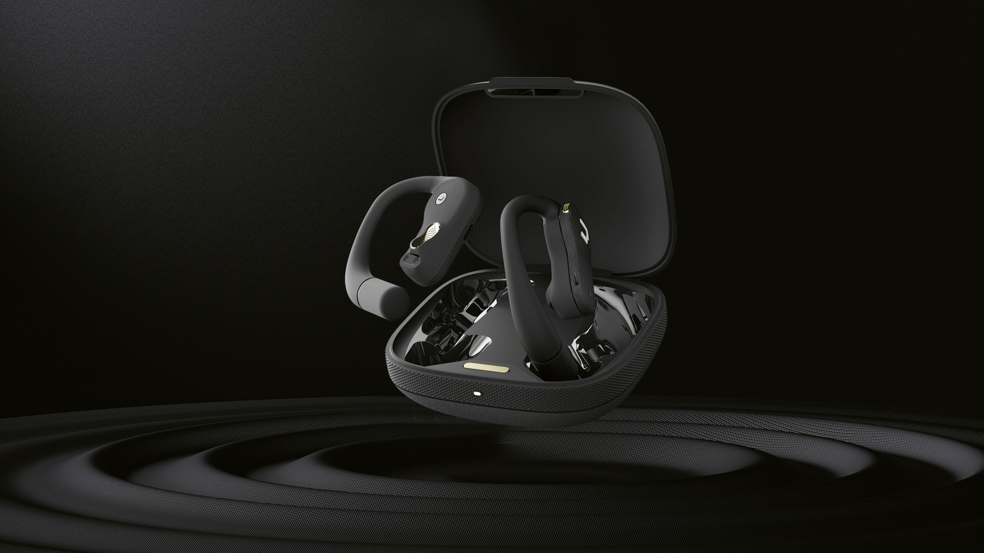 The Ringbuds Pro ear-hook earphones are made from titanium, giving them a particularly high-quality feel – especially in combination with their gold-coloured metal accents and the finely crafted surface texture complete with TPU coating. Consideration was also given to environmental compatibility in the choice of materials. The Ringbuds Pro are equipped with a novel technology that ensures a nuanced sound image through increased vibration amplitudes for precise transmission of sound waves into the ear canal.