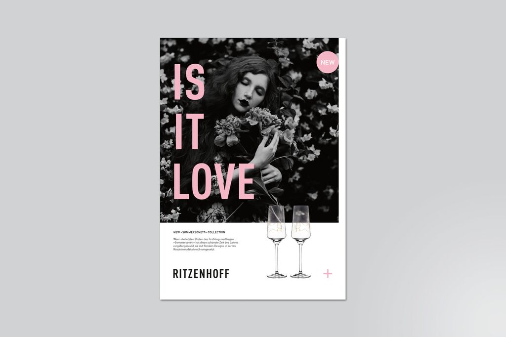 Founded in 1904, RITZENHOFF is one of the best-known glass manufacturers in Germany. Efficiency and flexibility were the objectives for the relaunch. The new brand design offers versatile possibilities for online applications. The stringent implementation in the responsive website with integrated e-shop forms the basis for sustainable growth together with partners, existing customers and new young target groups. The brand logo is compact and strong in its contours to facilitate digital applications. The brand symbol (+), derived from the historical glassmaker’s mark, emphasises the new brand essence and can be used across both digital and analogue media.