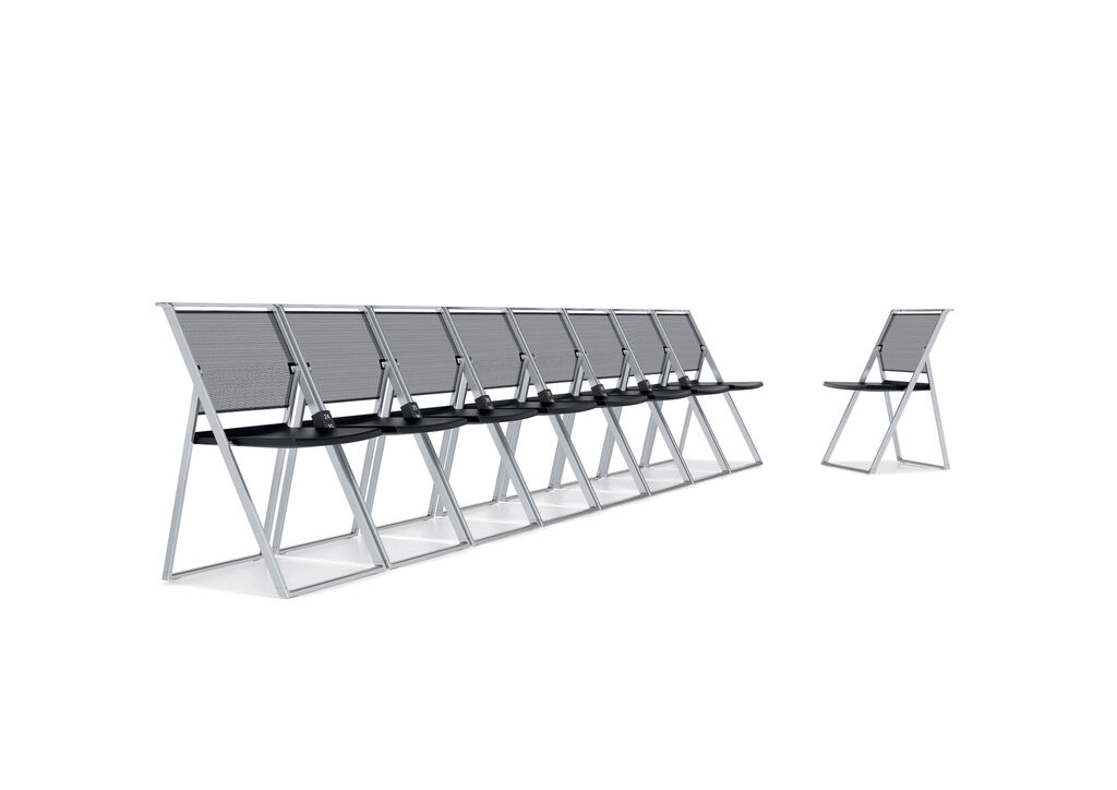 Elegance, comfort and ease of use are the outstanding characteristics of Riva. The chair was designed for multipurpose rooms such as event locations as well as for supplementary seating in offices or museums. As a visitor chair it can quickly be taken away again, stored using a wall storage bracket or compactly transported. Thanks to its ergonomically shaped seat and supple mesh backrest, it is extremely comfortable and, furthermore, very sturdy.