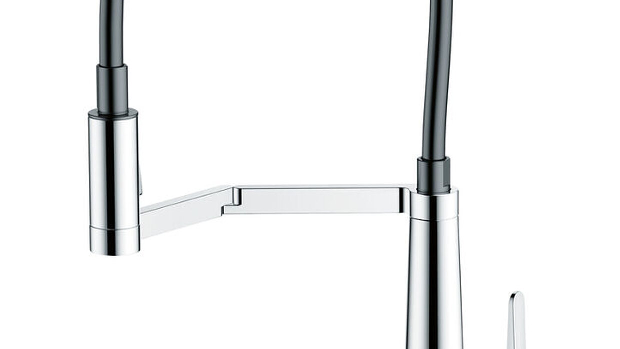 The special feature of this sensor kitchen tap is that the sensor window – as opposed to other taps – is not located at the front of the body but at the shower head holder. The holder can be swivelled around 300 degrees, so that users can control the water flow from any position by means of an infrared sensor and a simple gesture. The infrared sensor is battery-operated.