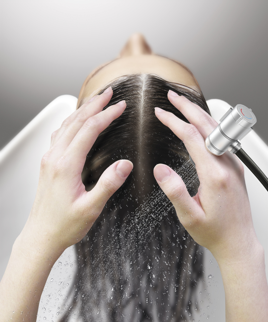 Salon Q offers hairstylists a user-friendlier rinsing faucet when washing a client’s hair. The faucet can be attached to the ring finger, which ensures complete freedom in the hand and fingers (for massaging the scalp) even while ‘holding’ the faucet. It provides a smooth wash and gives the salon a professional image. Salon Q is designed in an hourglass form to keep it firmly grasped in the joint between two fingers. Its surface is as large as a coin and the water outlet holes are designed with ultra-thin technology. The faucet has magnetic capabilities that allow it to be attached to the basin so that it can be easily lifted with two fingers. In the process of hair-washing hair, the hairstylist can control the water volume and temperature with the Salon Q device. Red Dot Award: Design Concept | Concept | Personal Hygiene