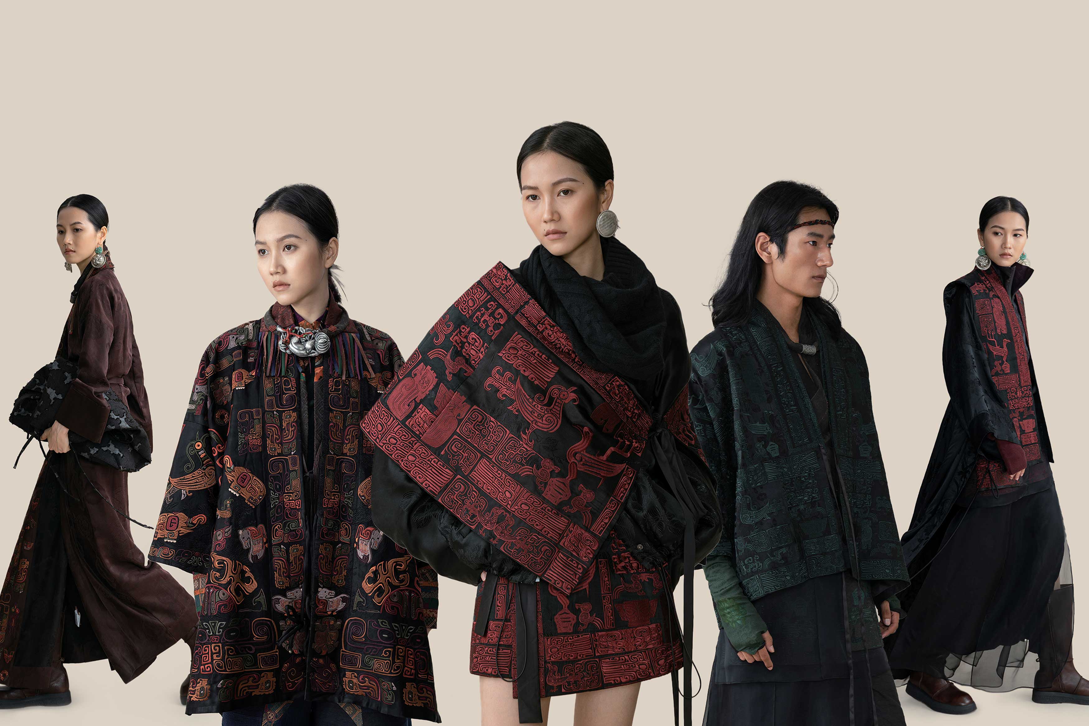 This clothing line uses Chinese gambiered Guangdong silk that is renowned for its eco-friendly production. Blending tradition and innovative techniques reveals vibrant colours and delicate textures. Craftsmanship involves refining, boiling, and sun drying to enhance the silk’s charm. Sanxingdui bronze artefact motifs are integrated to create elegant, dynamic necklines, embroidered cuffs, and hems. The collection reflects the unity of humans and nature.