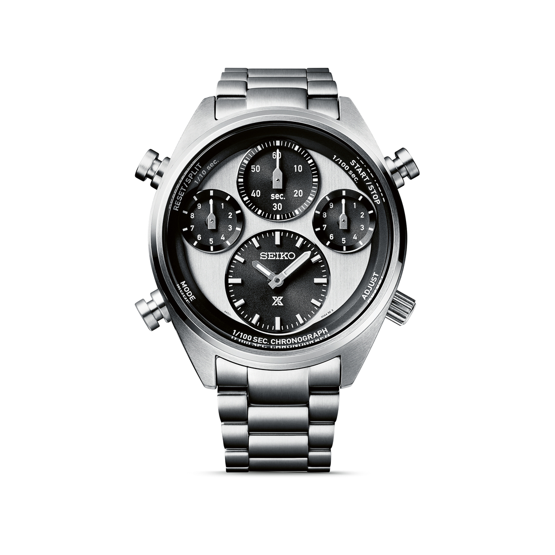 In the design of the Seiko Prospex Speedtimer 1/100 Sec Solar Chronograph SFJ001/SBER001, the separate dials were arranged to provide a high level of clarity in a small space.