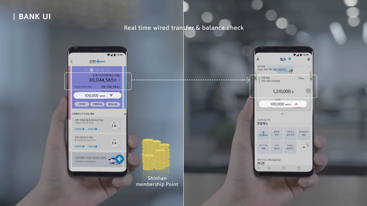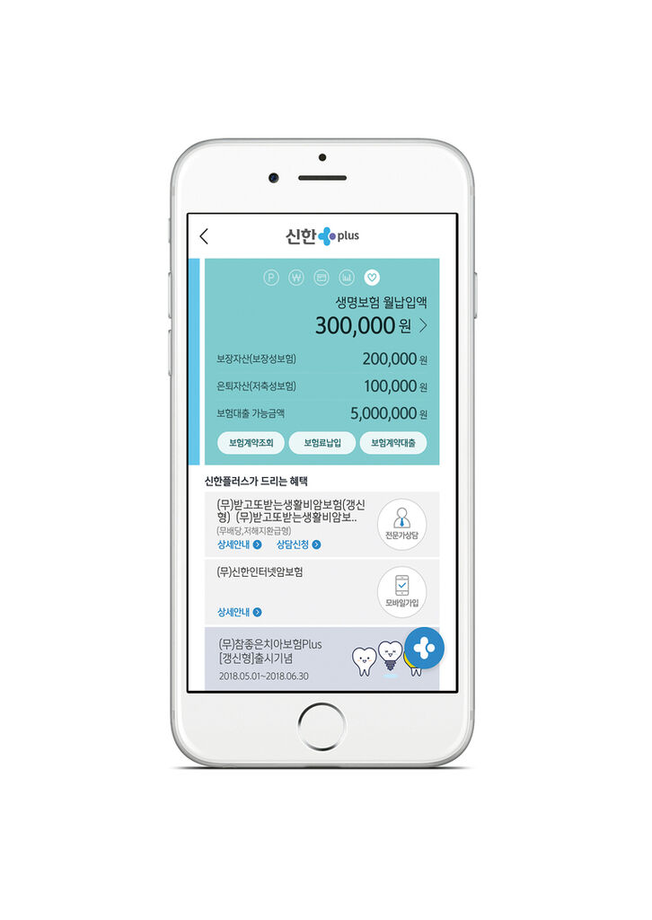 ShinhanPlus is a mobile application that combines four different service apps of the Shinhan Financial Group. These include banking, credit card, investment and insurance services. Customers can thus access all their financial information through one single user interface. The different financial services are presented in a consistent design, but are easily distinguishable through the use of different colours for each service area. The colour scheme is easy on the eyes and ensures good readability of the numbers. A global context menu allows quick switching to a different service area.