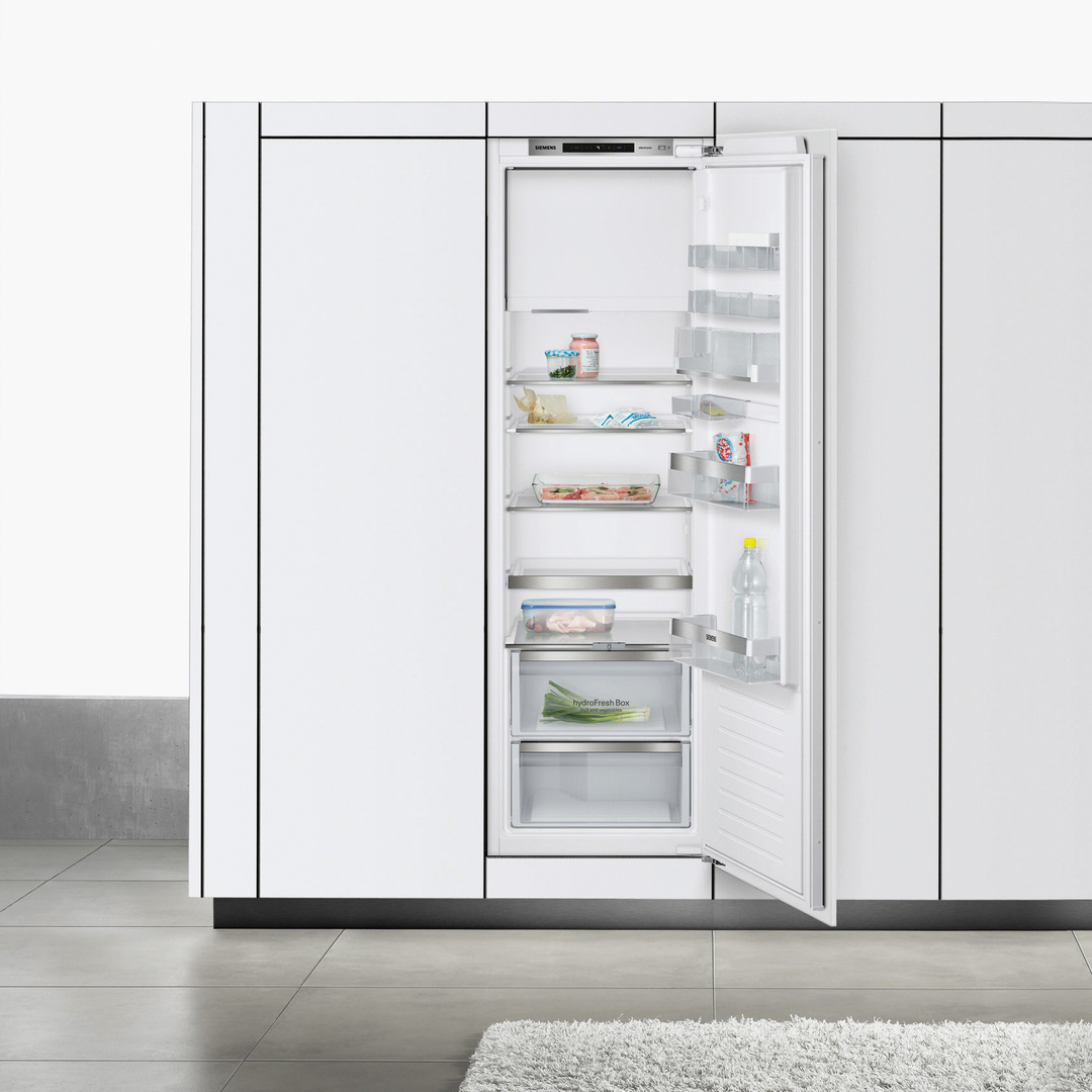 This built-in refrigerator product range offers technical innovations in terms of space utilisation and ergonomics: pull-out shelves and bins allow for neatly arranged storage and facilitate access. The design of the interior containers combines highly insulating materials and maximum useable volume. Laterally arranged, glare-free LEDs ensure perfect illumination. Metal trims protect areas that are subject to heavy wear.