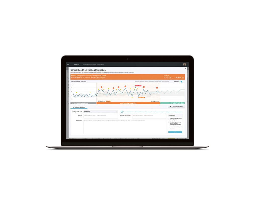 SiePA is a predictive analytics system that helps customers to turn collected plant data into valuable insights. Based on the in-depth analysis of historical data via integrated AI, it helps predict potential failures of equipment and processes, identify root causes, search for valuable maintenance experience and suggest preventive measures before the real failures happen. The system integrates plant data monitoring, condition prediction and smart diagnosis, as well as a series of visual analysis tools, in order to simplify the professional data analysis procedure in the form of intuitive and user-friendly tasks.