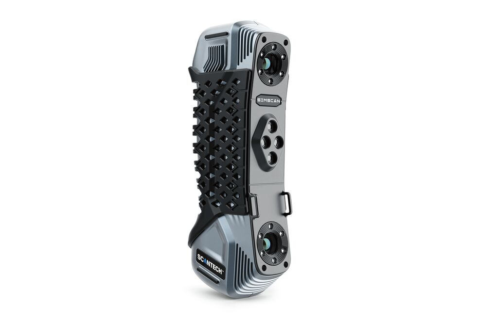 SIMSCAN is a portable, extremely lightweight 3D scanner equipped with two industrial black-and-white cameras featuring a large wide-angle field of view. It provides high-quality scans thanks to a high frame rate and fast data capture. Its remarkably small size enables 3D measurements even in areas which are difficult to access, such as engine compartments. The heat-dissipating, alloyed aluminium housing is enclosed by a non-slip shell which has been designed to match the human anatomy and serves as a handle. The control panel is framed by an appealing LED ring.