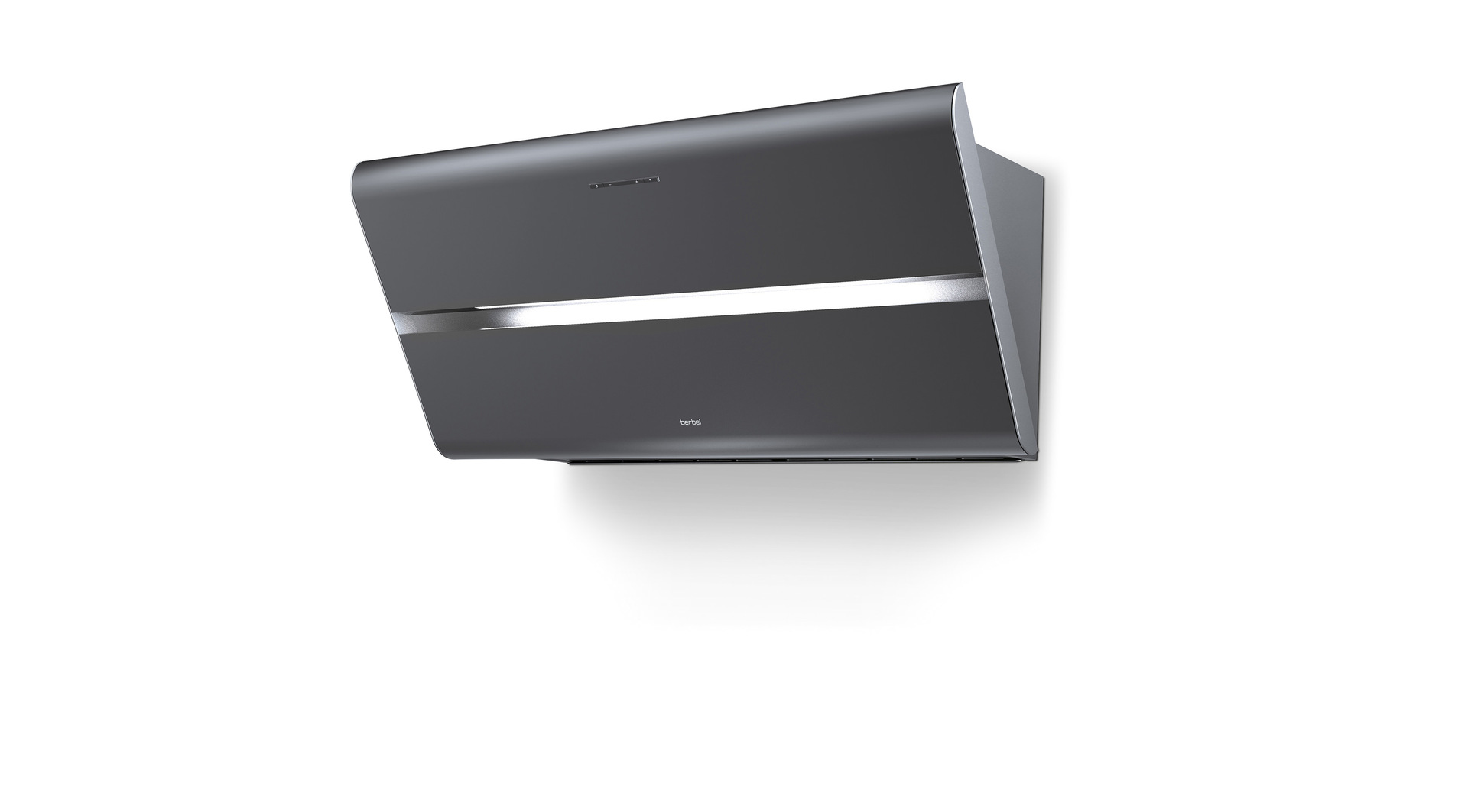 The Smartline range hood is conspicuous due to its matt black steel finish. Energysaving circulation technology is concealed inside, which cleans the air by means of a physically well-conceived design, two additional capillary traps and active charcoal. The hood is very easy to maintain. Simply open the collection tray and wipe it clean. BackFlow technology prevents condensation forming on the housing. All functions can be controlled via the discreet operating keypad.