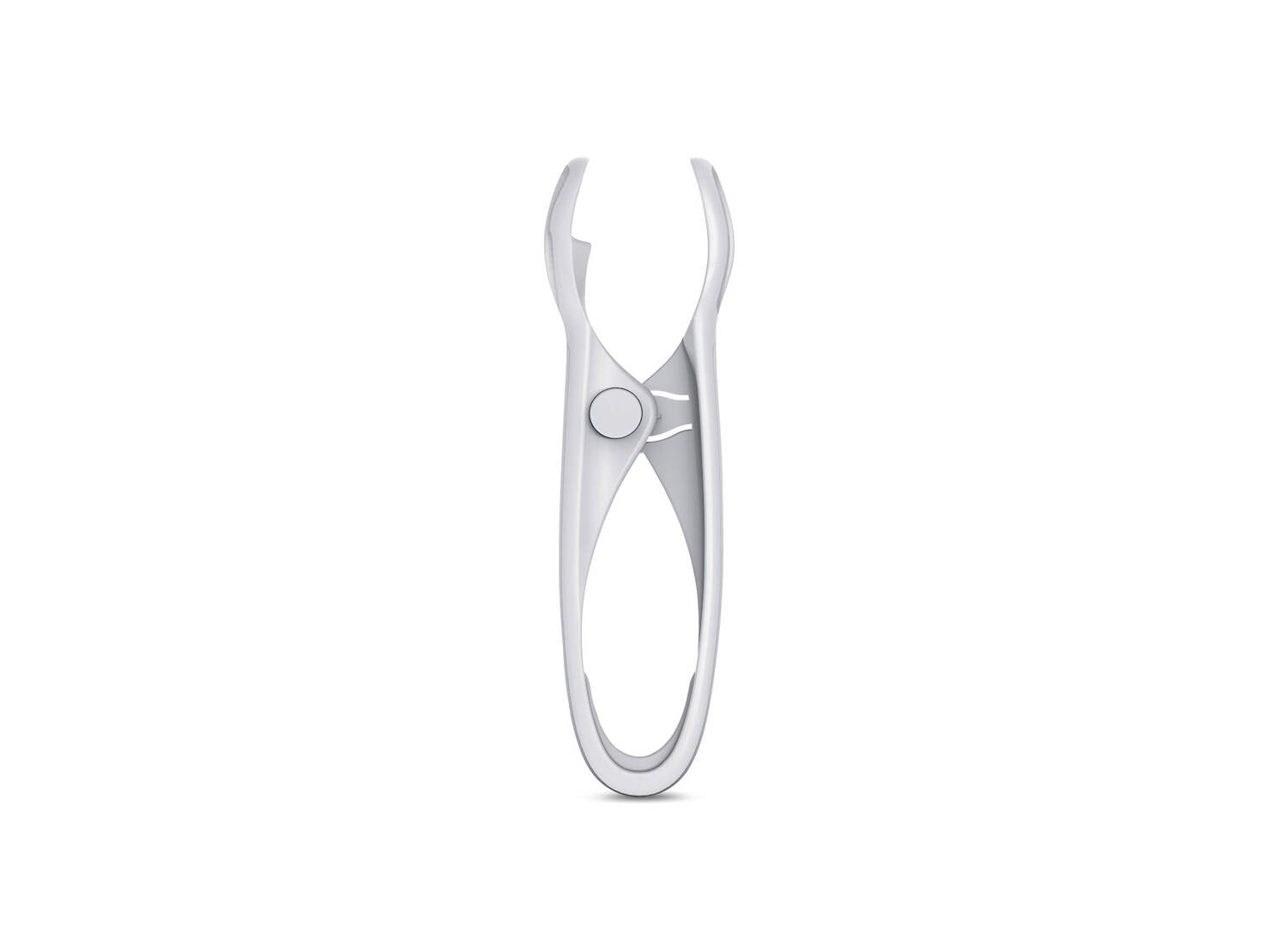 These snail tongs are adjustable to fit the size of different snails. In contrast to conventional snail tongs, the mechanism for opening and closing here works the other way round. Correspondingly, the tongs firmly lock the snail when the handle is squeezed and then fixed by means of a cogwheel mechanism. Later, the locking system can be easily unlocked by the push of a button.