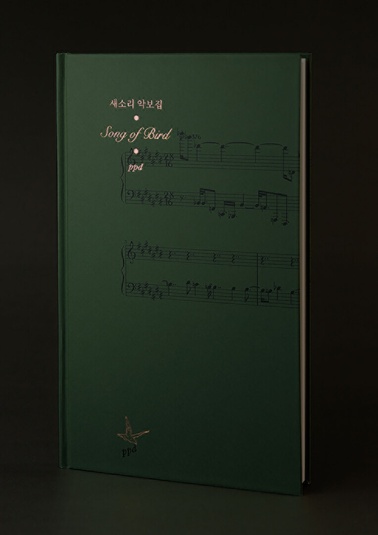 Unlike other animals, the sound of a bird is referred to as a song. In this project, bird songs are transcribed into real musical scores. Song of Bird is book and a visual compilation of these scores, accompanied by ornithological illustrations. Bird calls provided by NARIS (National Research Information System) are converted to scores using a computer programme that converts audio into sheet music. The accompanying illustrations are displayed in arch-shaped frames that serve as visual metaphors for a birdcage. This metaphor is revealed more intuitively on the book’s back cover, where a bird sits on cage-shaped arches. The book’s dimensions (200mm x 332mm) are heavily influenced by actual musical score books, so it is created in a larger size. Although the birdsongs are converted to scores by a computer, the font and colour scheme on the book cover are carefully selected to convey a graceful style that is reminiscent of a dignified music book. Red Dot Award: Design Concept | Concept | Visual Communication