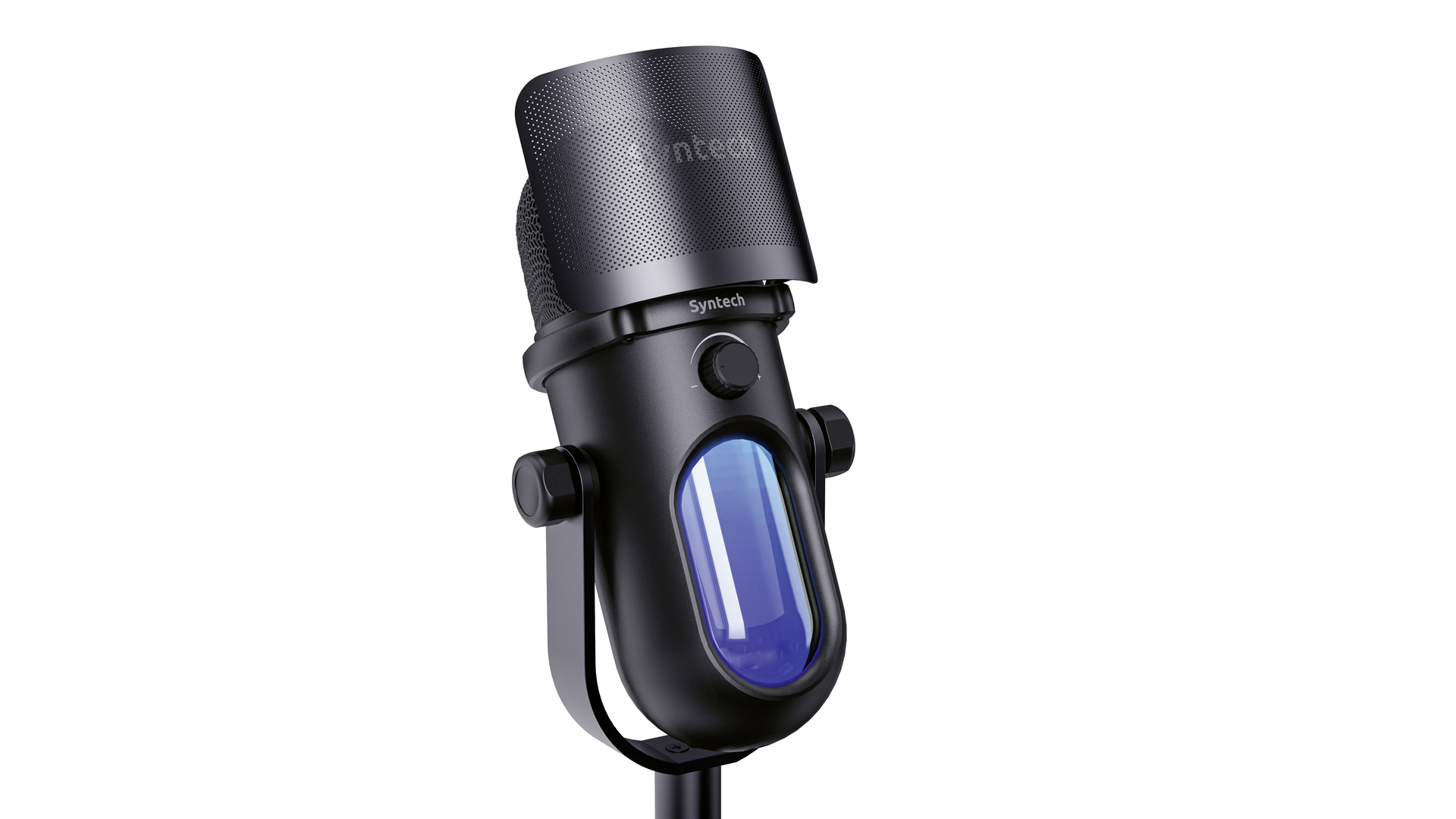 As a cardioid microphone, the Syntech GlowMic was developed with usage scenarios such as gaming, live streaming or content creation for YouTube in mind. It combines professional sound quality with light effects that can be adjusted via touch interface. For noise reduction, the device has a detachable metal windscreen, and it is also specially protected against electromagnetic interference. The stand is adjustable by 270 degrees, granting the user a lot of freedom in its use.