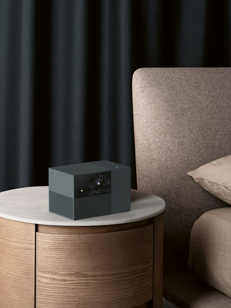 The TCL PlayCube is a smart portable projector for home and travel. Its cube shape is divided into two modules, the wider one housing the projector and the narrower one the speaker. Inspired by Rubik’s Cube, the latter can be rotated around its axis, allowing the projection angle to be adjusted to suit the circumstances. In addition to the playful element, the feel of the product plays an important role: a finely structured textile covering contrasts with smooth and grooved surfaces.