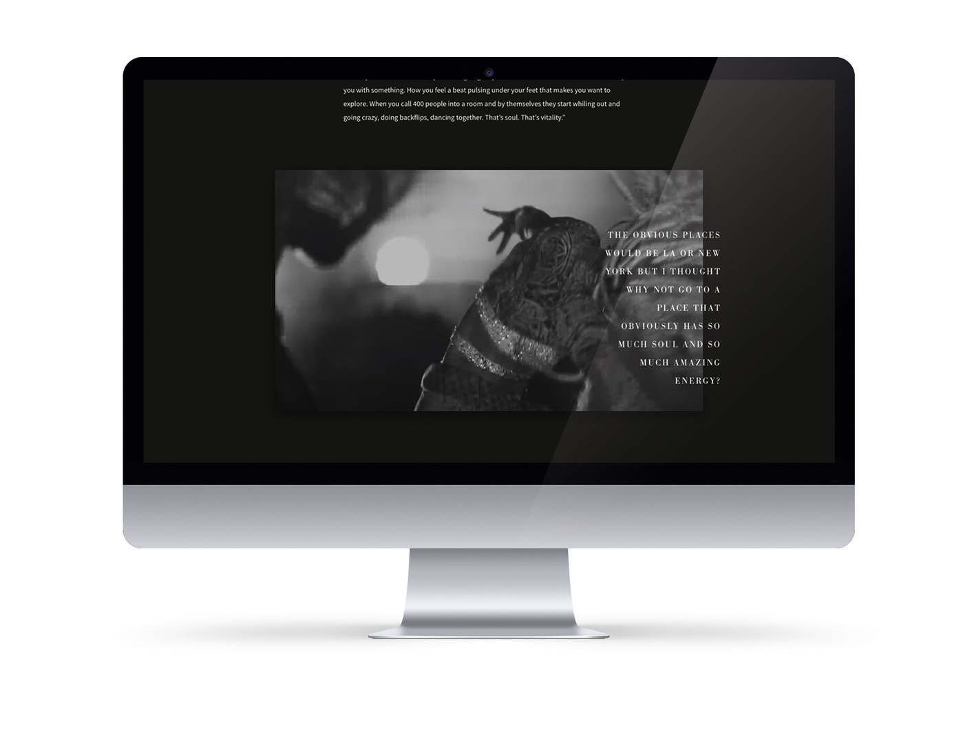 Filmed at Baltimore’s Lithuanian Hall on July 18, 2016, this documentary chronicles music artist FKA twigs as she calls to action a community to gather and celebrate artistic expression by dancing together. The film was launched exclusively on WeTransfer’s content platform “This Works”. A microsite was created that was on the one hand identifiable as a blog post while on the other hand was unique enough to stand out from other content. To integrate the element of movement, some still images turn into film sequences when touched by the cursor.