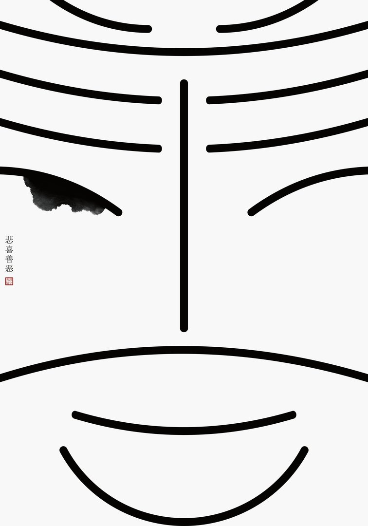 This poster series is characterised by its use of Chinese character strokes, which are used to form the words for joy, sorrow, good and evil. The posters, however, not only reflect the form of the characters, but also depict matching emotional facial expressions. In this way, the posters reinforce the meaning of the words and convey the expressiveness of the written Chinese language.