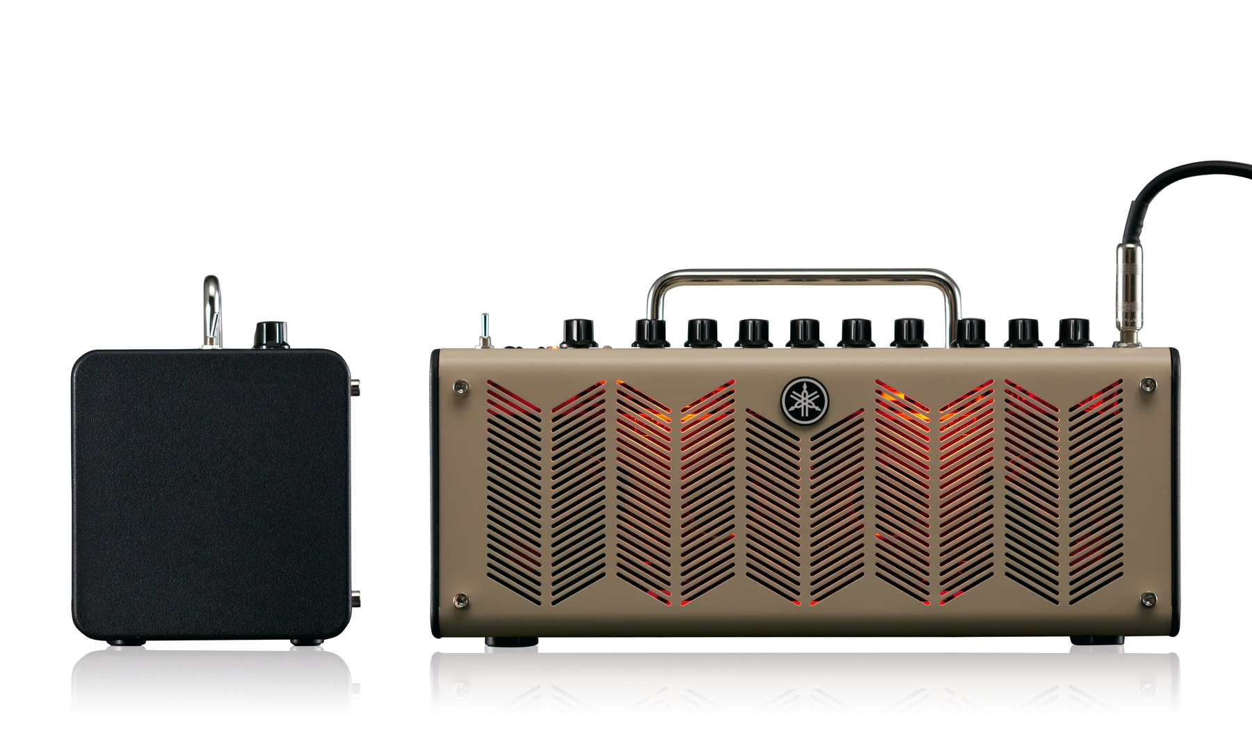 The THR series was developed for any location beyond the stage where a guitarist may need an amplifier. Apart from functionality, the main objective of the amplifier design was to heighten the fun of playing the guitar. The paintwork and colouring only improve with regular use, while the shape and feel of the knobs, screws and handles adapt to the mood of the guitarist. The THR amplifier mimics a tube amp with a power lamp that slowly lights up in orange – like the glow of a “virtual tube” visible through the front grille.